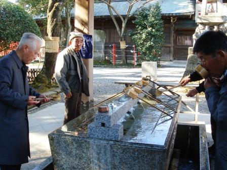 清め水 ひしゃくで水を汲み手を洗って